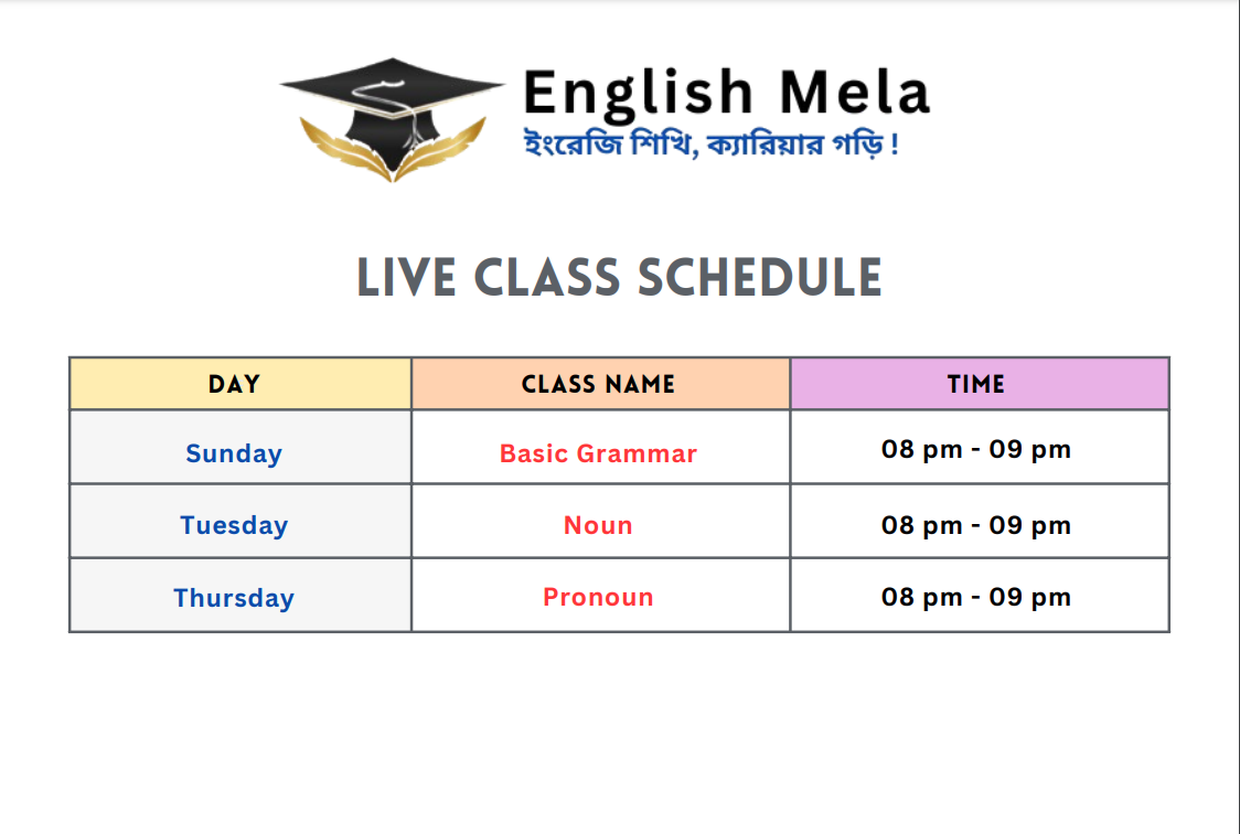 - স্কুল-কলেজ ও ইউনিভার্সিটির সিলেবাস অনুযায়ী প্রাসঙ্গিক English Grammar-এর নিয়ম ও উদাহরণ